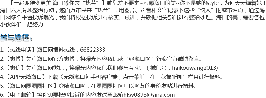 海口瓊山啟動“公安+N”模式 將“隨手拍”納入“門前三包”職責